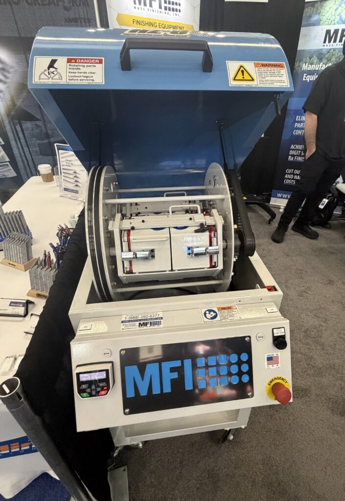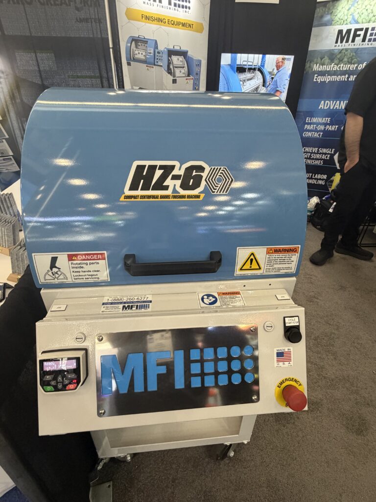 There are various variations of those sorts of machines, from smaller vibratory bowls and tubs that rotate in only one route to centrifugal barrel tumblers with 4 barrels. The HZ-6 is MFI’s most compact system but, with a footprint of lower than six sq. toes and solely two barrels, which may accommodate components as much as 8″ lengthy and 4.5″ in diameter. For comparability, Marketon stated the corporate’s HZ-330 machine “would take up this complete sales space after which some.”